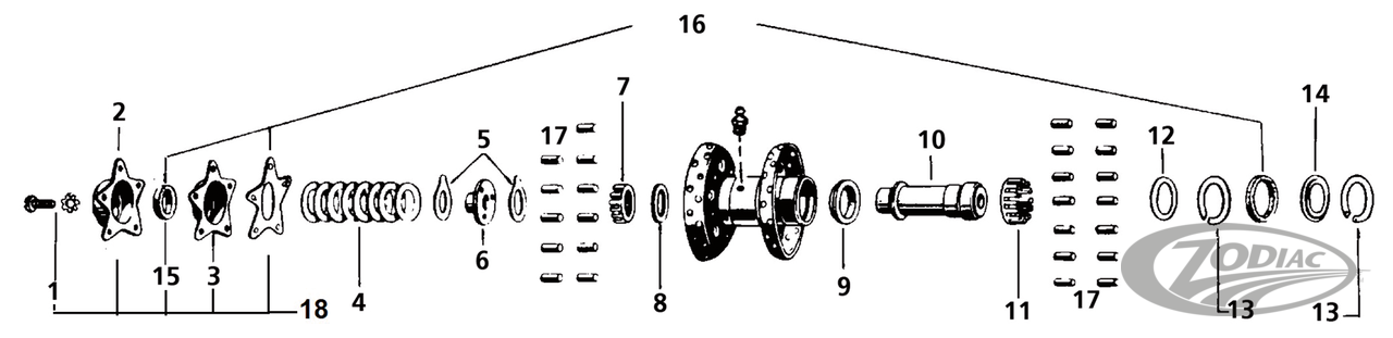 Superb quality replacement parts for the Star wheel hub, as used on 61", 74" and 80" models 1936-1957 front and rear, W-models 1937-1952 rear and Servi-Cars 1941-1957 front. Unless differently indicated these parts are Genuine Zodiac.