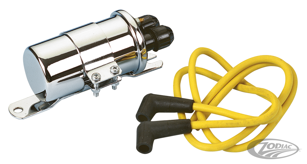 Improved version to the classic round-style coils. Internal windings are 100% immersed in a genuine oil-filled jacket which cannot become brittle or crack like in cheaper versions. Available in a 6 Volt and 12 Volt version. Replaces the OEM coil on 1947 and up Harley's. Produces a 10% higher output than the stock coil.
