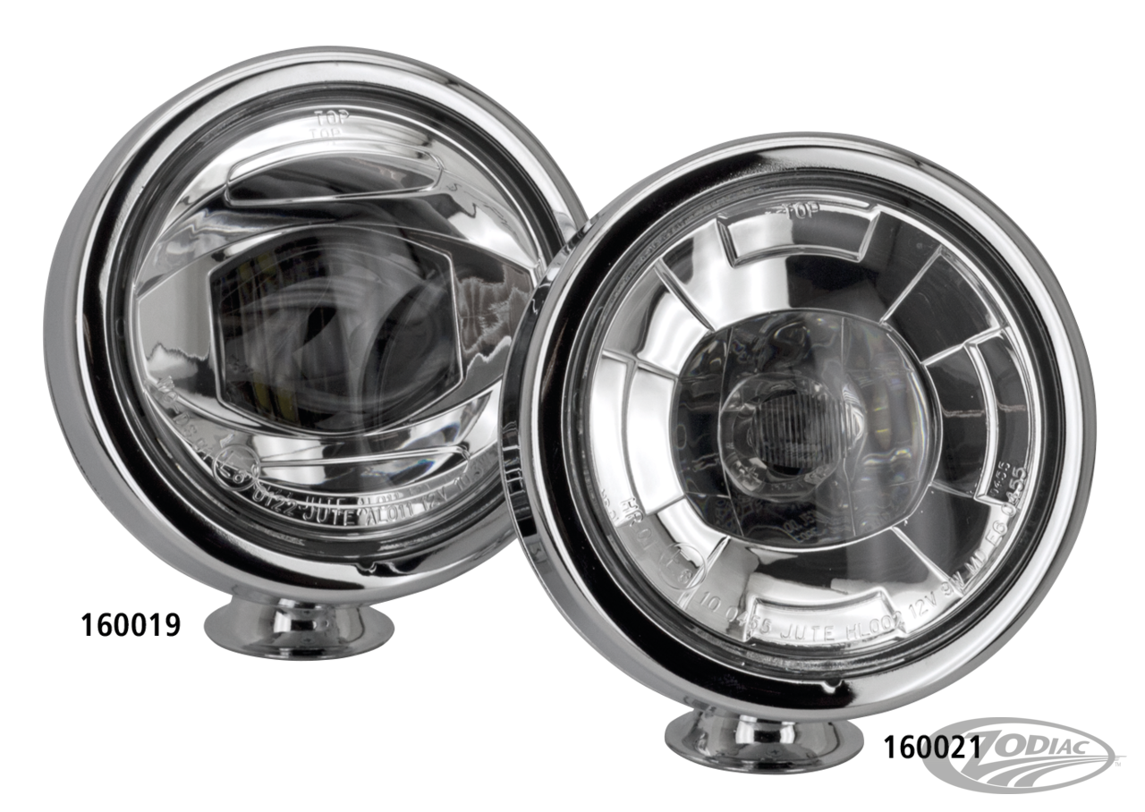 These LED lights have the same candle power as the well known 12 Volt lights with a 55 Watt H3 bulb, but thanks to the reliable LED technology the standard version draws as little as 9 Watts, whereas the High-Output version only draws 10.5 Watts. Housing is 4 1/4" (10.8 cm) diameter and 3 1/4" (8.5 cm) deep. Lights are E-approved, feature a bottom swivel mount and come pre-wired for easy installation. Sold each.