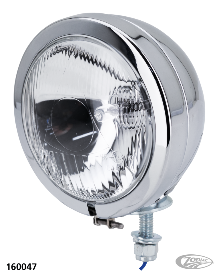 Chrome-plated reproduction of the late model spotlight, fits FL 1962 to present. Complete light includes light unit with bulb and is pre-wired. Available with unit with or without EU approval.