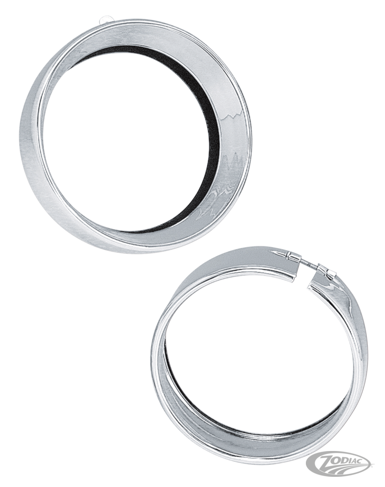 Finally there is an affordable alternative to give your stock or Bates Style headlight that beefy stretched look. This chrome plated rim adds depth to your headlight which gives a classic hot rod look. Does not fit with headlamp visor.