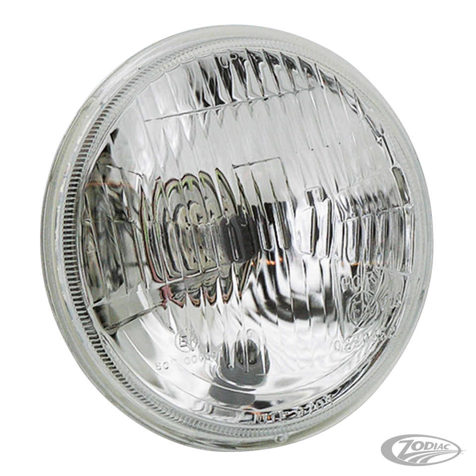 These Zodiac headlight units come complete with 12 Volt 60/55 Watt Halogen bulb, 12 Volt 5 Watt parking light and pre-wired fittings. Lights are E-approved. The 5 3/4" (146mm) units fits our Bates Style and most other stock and aftermarket 5 3/4" lights. The 7" (178mm) units fit all FL and FLH models and many other stock and aftermarket headlights.