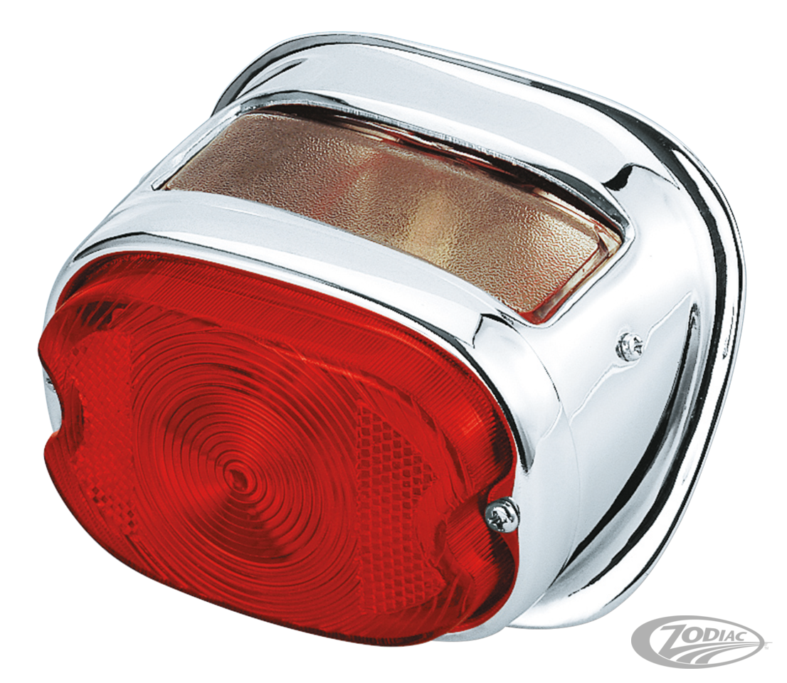 Fully chromed original style taillight. Replaces original on all Twins 1955-1972 and for Custom applications.