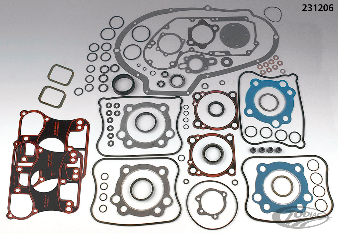 Premium quality gaskets sets, available in three different makes. We supply USA made James Gaskets, USA made Cometic Gaskets, as well as gaskets and sets from Europe's leading gasket manufacturer Athena. All are manufactured from the highest-grade materials but each manufacturer adds his own specialties in the manufacturing process. Each set will meet or exceed OEM standards. Available are: complete sets, top end sets and push rod seal sets for most models from 1937 to present. All gaskets, seals and O-rings are also separately available and are listed elsewhere in this chapter. Note: Sets from Athena do not include valve stem seals. Note: These Gasket & Seal kits do NOT fit complete S&S engines, these are listed on the next page.