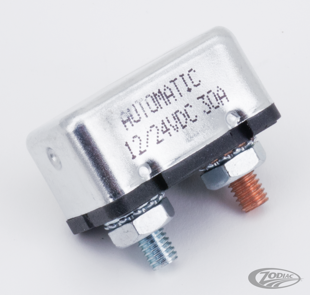 Fits FL 1978-1984, FX 1978-1986, FXR 1982-2000, Dyna 1991-2003, Softail 1984-2006, Sportster 1978-2003 and Touring 1980-1993, Accel circuit breaker 30 Amp. (OEM 74599-77C)