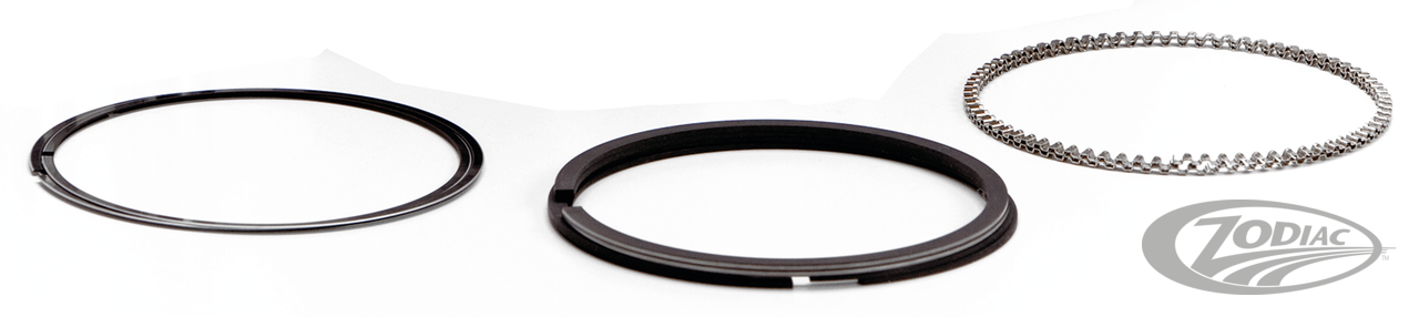 Hastings, the OEM supplier to Harley-Davidson, manufactures these rings. They are the same piston rings that are shipped with every new motorcycle as well as sold by Harley's parts department. All ring faces are pre-lapped for easier seating. The exclusive Flex-Vent oil control ring is the easiest of all designs to install because there are no right side ups or side downs. The Flex-Vent ring also assures a uniform pressure on the cylinder wall contacting rails and a positive oil control. Its open design affords 200% greater drainage capacity than conventional designs. Even with all these features Hastings rings are made available by Zodiac at low, more affordable cost. These superb quality piston rings are sold in sets for two pistons with the exception of the XL 883 and XL 1100 Evolution Sportster rings, which are sold in single sets.