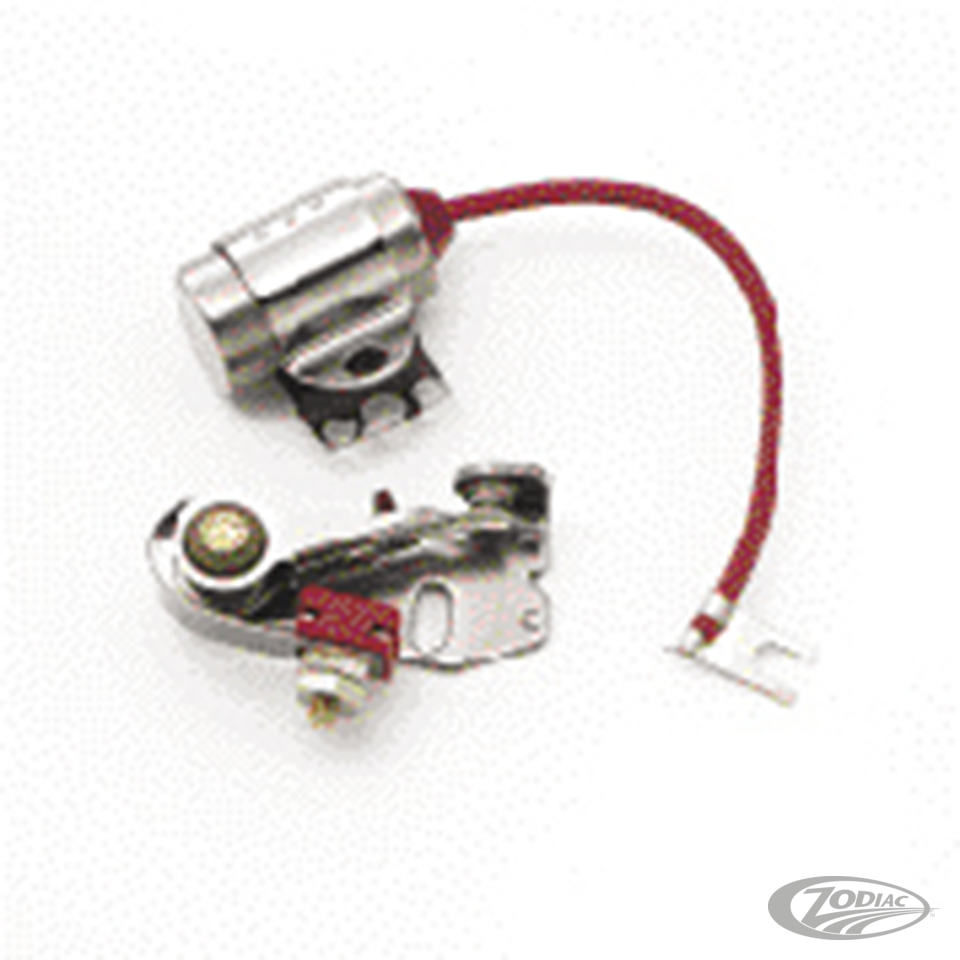 Kits are available for all models 1948 thru 1978 (except Magneto), feature matched contact sets with performance 32 oz spring, premium mylar insulated High-Performance condenser and packet of point cam lube. Only the best materials are used to ensure easier starts, smoother idle, crisper throttle response, and improved top end performance.