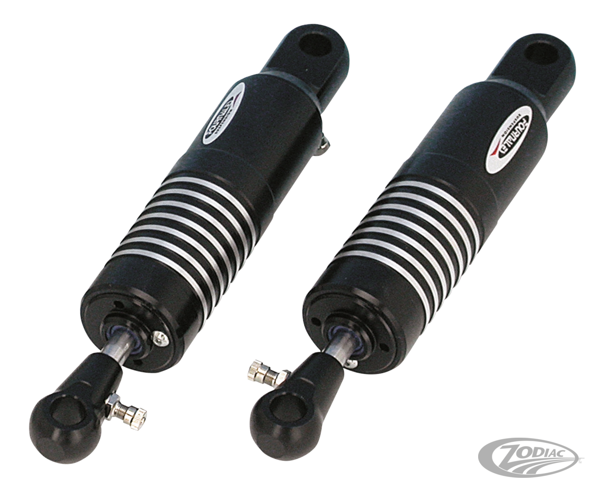 Pan-Cruise shocks are specially designed for the use on Harley-Davidson Softail using the latest and most advanced aeronautical technologies. These superb quality shocks will not only improve the suspension characteristics but also offer outstanding control over your Softail at high speed, together with greater riding comfort. Pan-Cruise shocks are fully adjustable in both ride height and pre-load, simply by changing the air pressure in front and rear section of the units. Replacement high-pressure air valves are separately available. Other features are: •Adjustable height from stock position to as much as 2" (50mm) below stock •Pre-load can be set from riding solo to full load of two persons plus luggage •Units come complete with installation instructions and are pre-set for average use •Full year, unlimited mileage factory warranty •1984-1999 models are available in clear or black anodized finish •2000 to present models come in a clear anodized finish