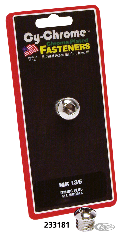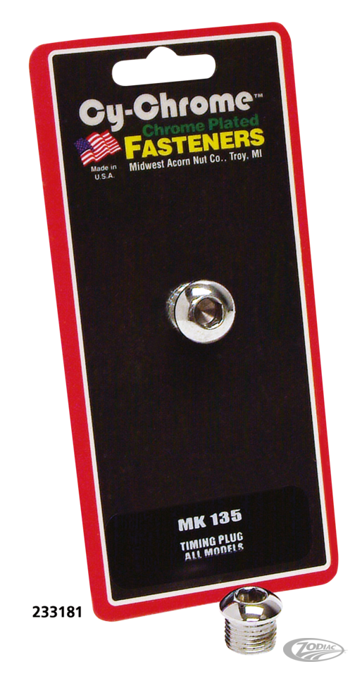 Timing plug, 5/8-16 threaded with allen head as stock on Shovelhead 1970-1984, Evolution Big Twin 1984-2000 and Sportster 1970-2003, Chrome, Midwest Acorn (OEM 720)