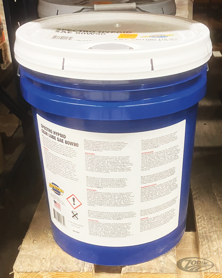 Spectro hypoid transmission lube is a multi-viscosity SAE 80W90 GL5 extreme high pressure gear lubricant that is especially formulated for use in both 4 and 5 Speed Harley-Davidson Big Twin transmissions. Specifications exceed all of the API gear oil classifications GL1 thru GL5. Special additives provide improved fluid flow to bearings, easier shifting and less drive train friction.