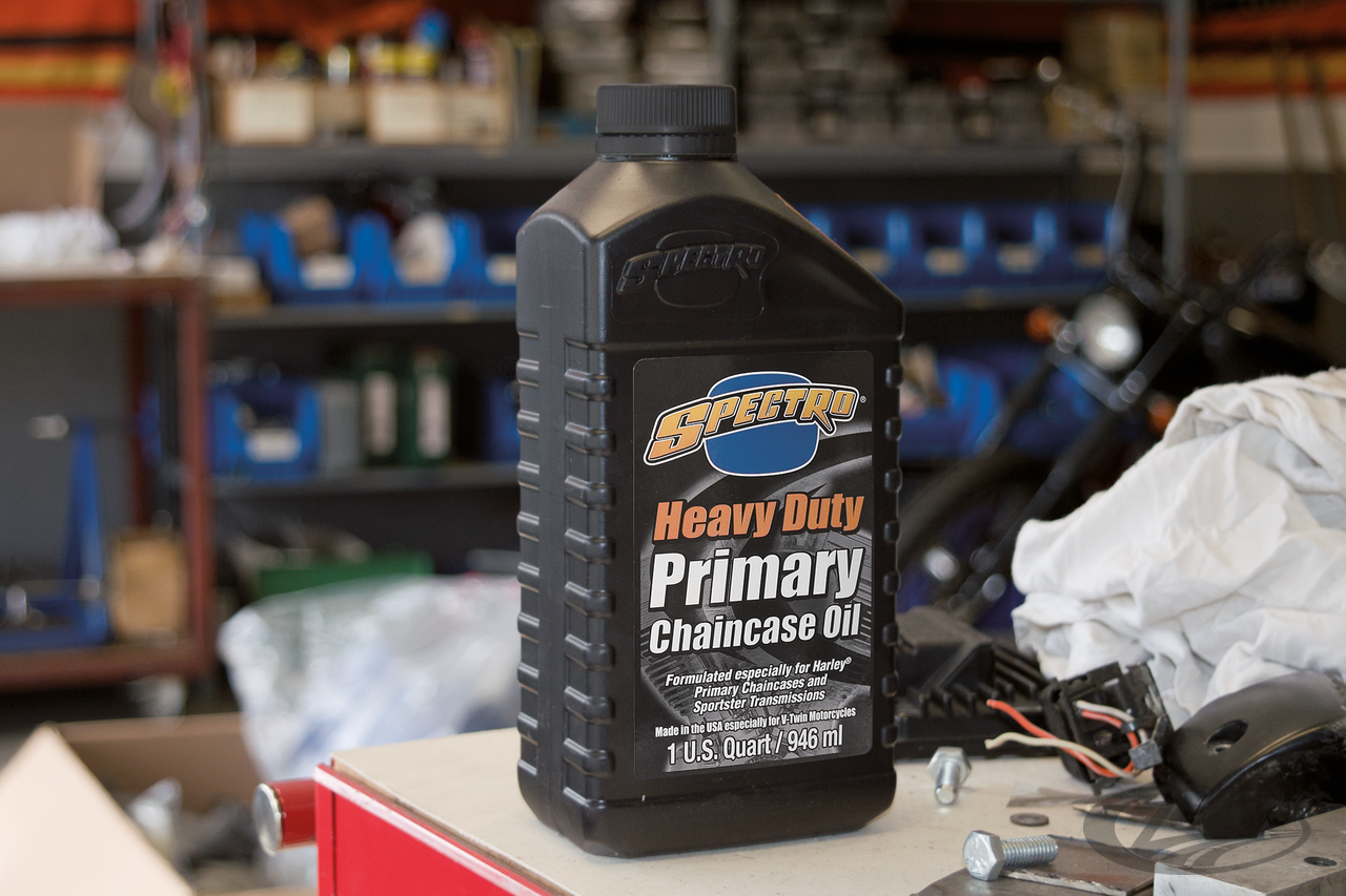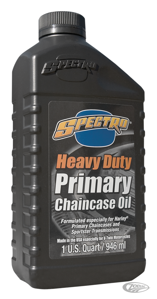 Spectro "Premium" primary chain & transmission lubricant is the best available fluid for lubrication of Harley-Davidson chain-cases and chain-case/transmission combinations under all conditions. The use of "Premium" primary chain-case/transmission lubricant eliminates most gear noises and clutch sticking even after prolonged periods of storage. It is formulated with special high-shear polymers to eliminate gear wear and ensure positive clutch control and smooth operation. Spectro "Premium" primary and transmission lubricant is recommended for use in all Big Twin with closed primaries and all Sportster models with combined primary/transmission.