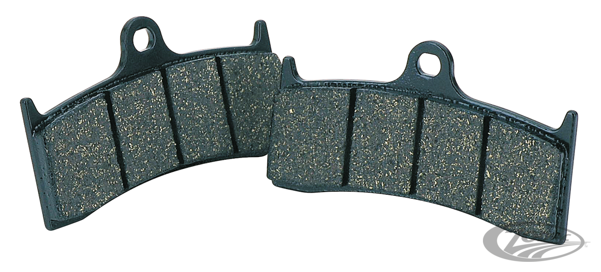 Many Harley riders improve the braking capacity of their bike by fitting after market calipers. This table makes it easier for you to see what you have to order when you need replacement brake pads. We offer stock replacement pad sets for PM and most GMA calipers, EBC pads in Organic/Aramid mix, HH sintered copper alloy, and V Semi-sintered, as well as SBS brake pads in Sinter/Ceramic and Carbon Tech. These pads are EC, DOT and R.F.A. approved and are famous for consistency and performance under any condition and feature a visible wear limit indicator. We have mentioned the caliper brand and model for all calipers in our range, but many of these pads also fit other makes of calipers as well. The pictures and dimensions will help you to order. Pads are supplied in pairs.