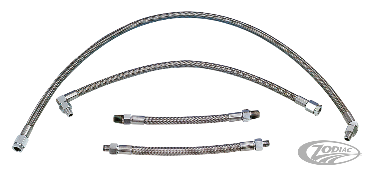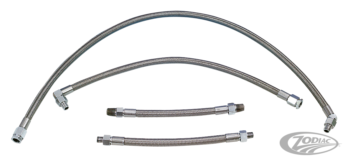 These kits are the ultimate upgrade for the oiling system on 1986 to present XL Sportster and 1984-2000 Evolution Big Twin. The oil lines feature aircraft quality PTFE inner tube and braided stainless steel outer, using stainless alloy G-lite fittings. Each kit is tailor made for the specific application and quality inspected to assure leak proof and easy mounting. Seals for the oil line-to-tank fittings are separately available. These seals must be replaced every time the oil lines are disconnected.