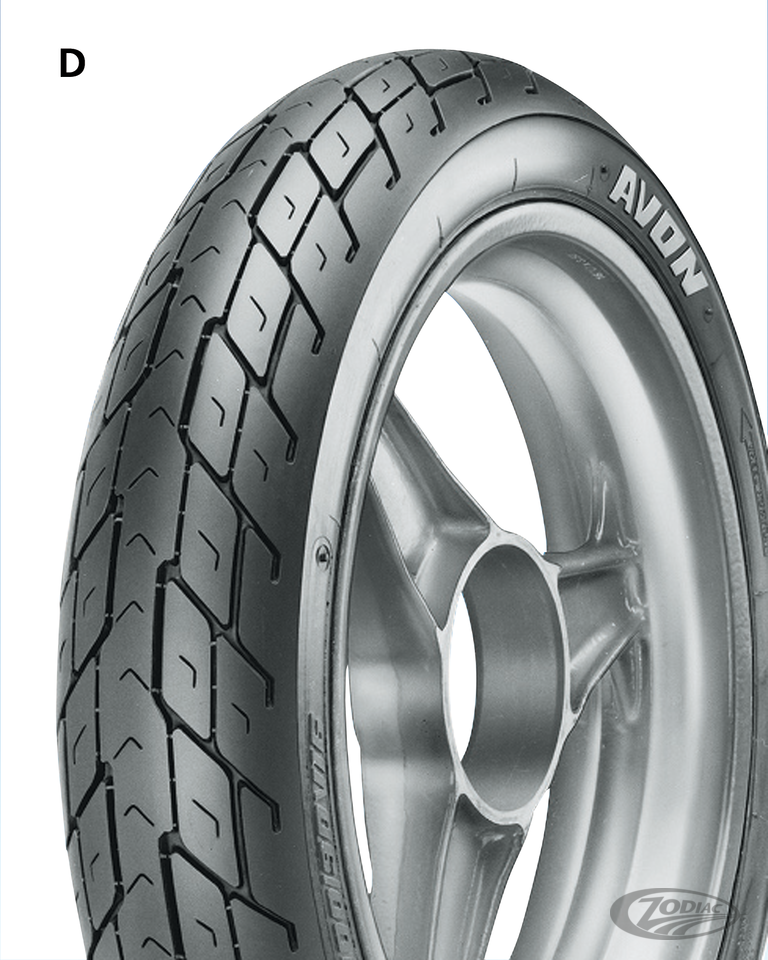 Avon's Roadrunner tires have excellent braking performance in all conditions with their unique thread pattern providing extra drainage in wet weather. Strong pre-stressed casing ensures ride comfort and stability. The special contour promotes progressive lean-in to corners.