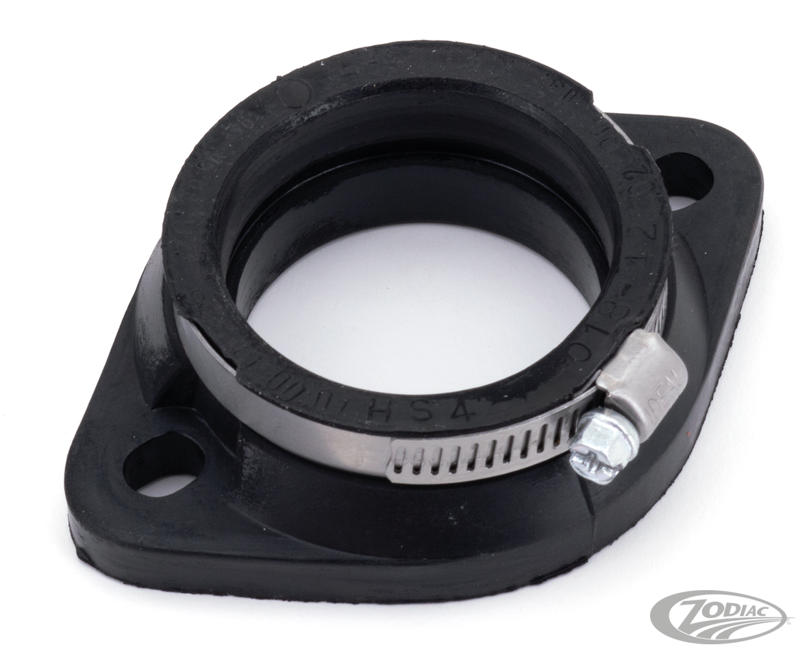These rubber mounting flanges are initially made for Mikuni carburetors but can also be used for custom applications. Flanges have slotted mounting holes with a 2.859" (72.6mm) center to center distance.