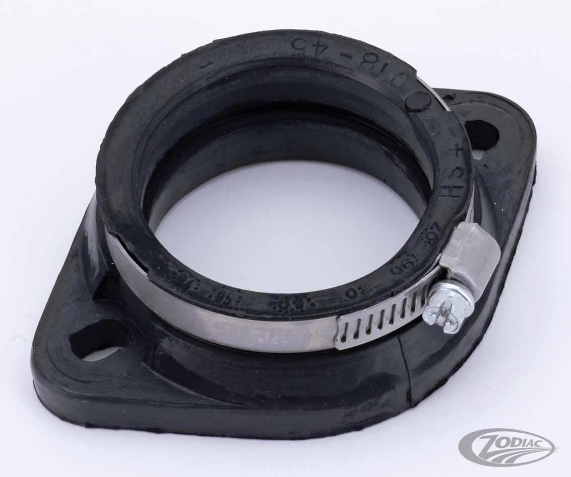 Rubber carburetor-to-manifold mounting flange for early style manifold with round opening, 45mm Mikuni carburetor