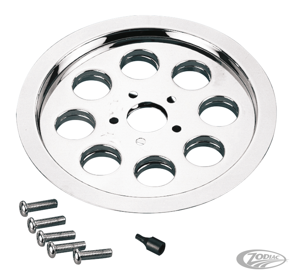 These easy to install inserts feature beautiful chrome-plating on precision-formed deep dished steel covers for an exact fit on OEM style rear wheel belt sprockets.