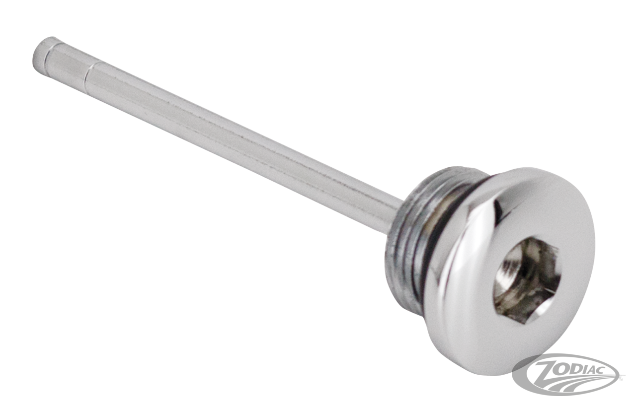 Genuine Zodiac stock replacement. Has a top-quality chrome plated finish. Comes complete with seal washer. Fits 2006-2017 Dyna, 2007-2017 Softail and 2007-2016 Touring.