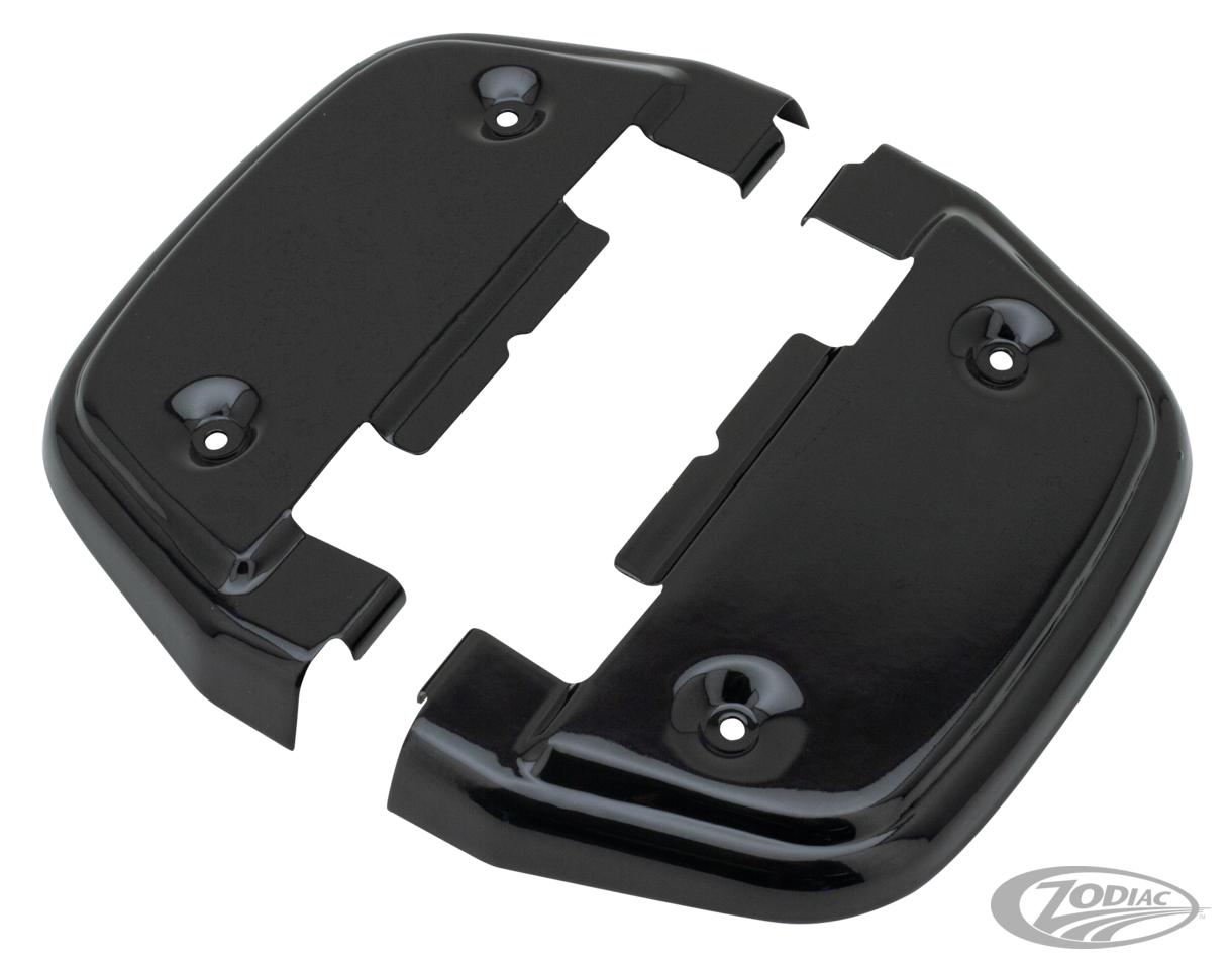 These covers fit exactly on the lower side of the stock cast passenger floorboards on all 1987 to present FLH and FLT series Touring, and all 1986 thru 2017 FLST Softail and 2006 thru 2017 Dyna models with OEM accessory floorboard mounts. Easy to install with the included hardware. Sold in pairs in chrome or black.