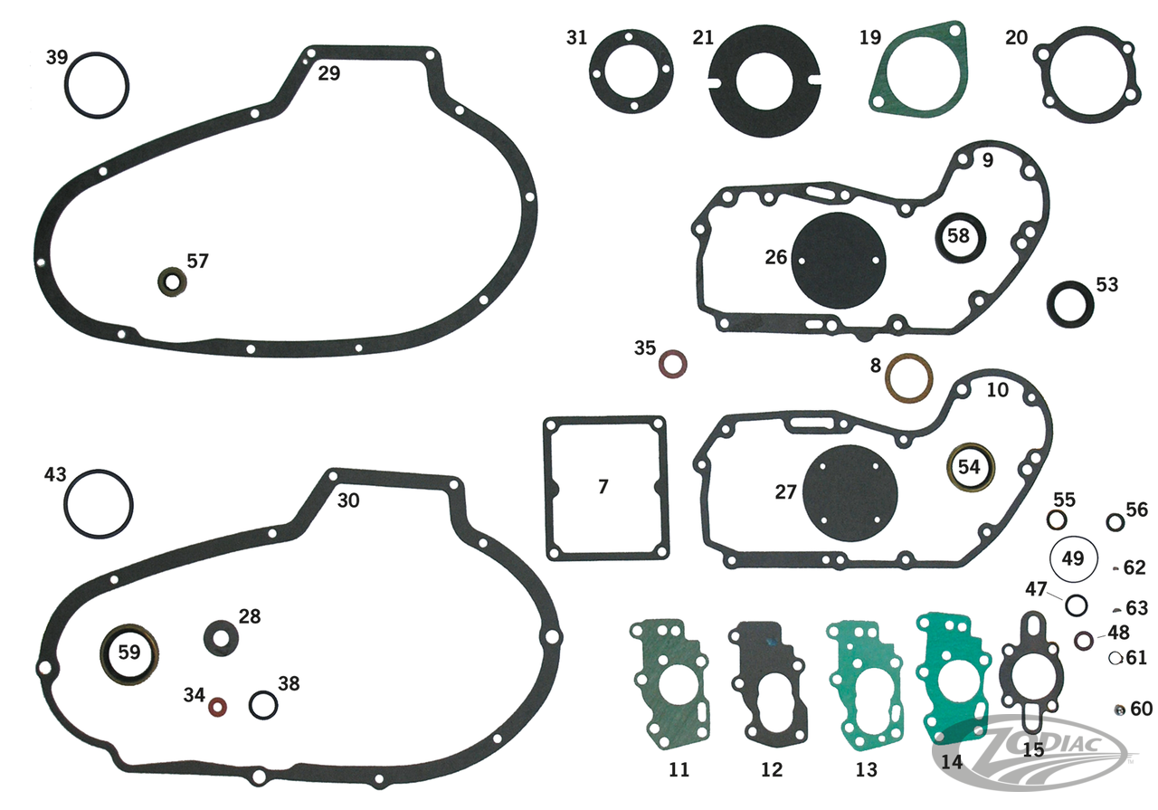 Individual gasket, seals and O-rings for Sportster 1972-1985. Note: Sold to dealers in pack quantities as listed.