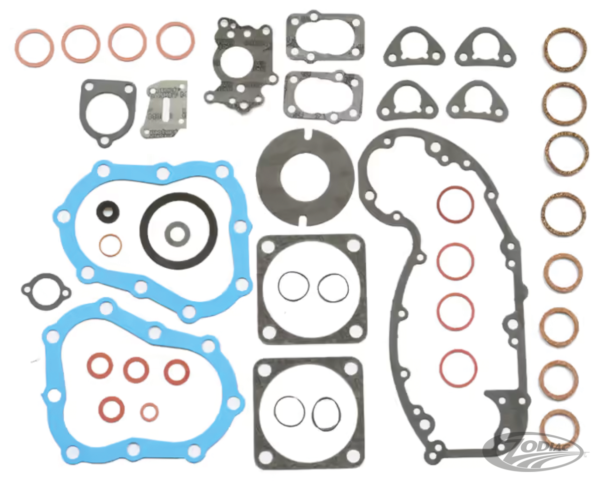 Premium quality gaskets sets, available in three different makes. We supply USA made James Gaskets, USA made Cometic Gaskets, as well as gaskets and sets from Europe's leading gasket manufacturer Athena. All are manufactured from the highest-grade materials but each manufacturer adds his own specialties in the manufacturing process. Each set will meet or exceed OEM standards. Available are: complete sets, top end sets and push rod seal sets for most models from 1937 to present. All gaskets, seals and O-rings are also separately available and are listed elsewhere in this chapter. Note: Sets from Athena do not include valve stem seals. Note: These Gasket & Seal kits do NOT fit complete S&S engines, these are listed on the next page.