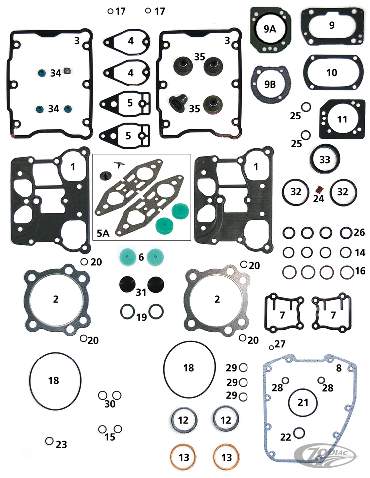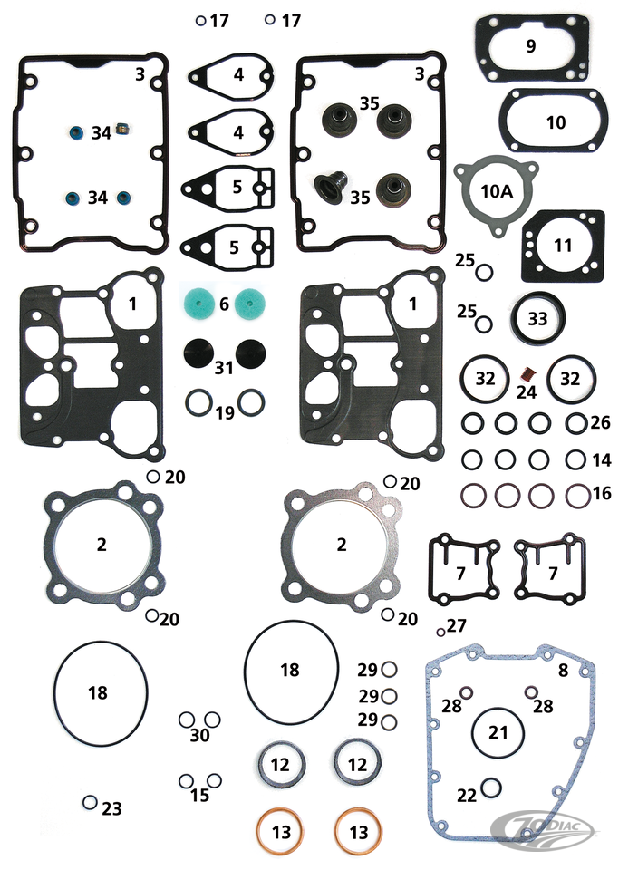Complete line of individual gaskets, seals and O-rings for 1999-2017 Twin Cam. Note: Sold to dealers in pack quantities as listed.