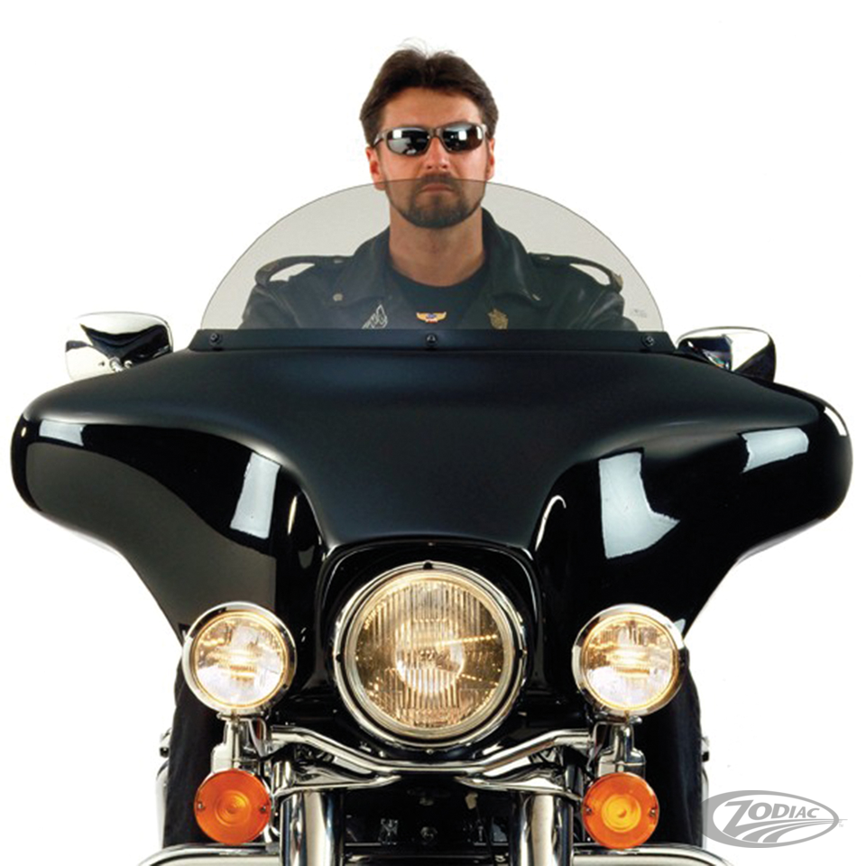 Fits 1996-2013 Batwing fairings, Dark tinted, installed height 8.75" (22.2cm) (TÜV)