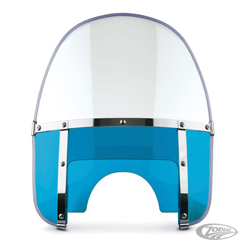 Replacement 3-piece standard round top windshield kits without brackets, Clear standard round top, blue lower and adjusting window (TÜV)