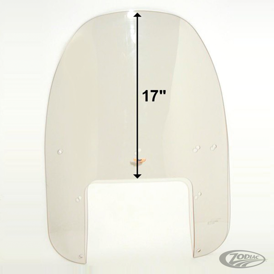 The Custom Heavy Duty is one of our most popular windshields and offers plenty of height with a slim profile for riders of FX Narrow Glides and Sportsters who want to tour longer distances. Measures 19"-21" (48.2-53.3cm) from the top of the headlight cut out to the top of the screen and is 19" (48.3cm) wide.