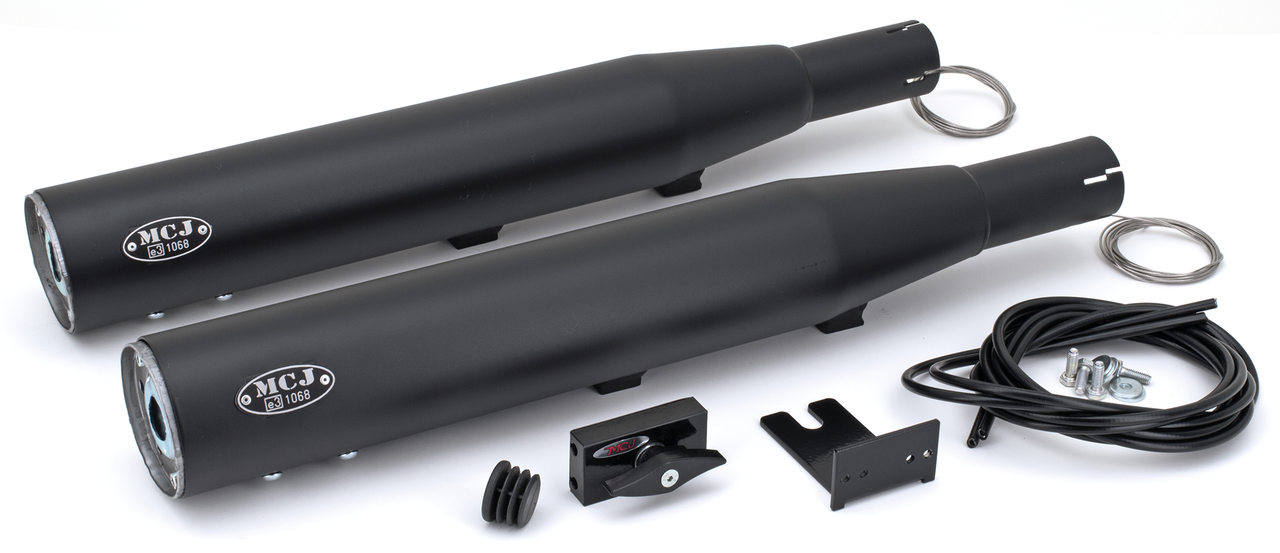 Fits European market (5HD…) 2004-2006 FXST Softail Standard, FXSTB Night Train and FXSTS SpringerOrder MCJ 80mm end caps separately, Slip-on mufflers, without end caps, Royal 80 black (Euro-3)