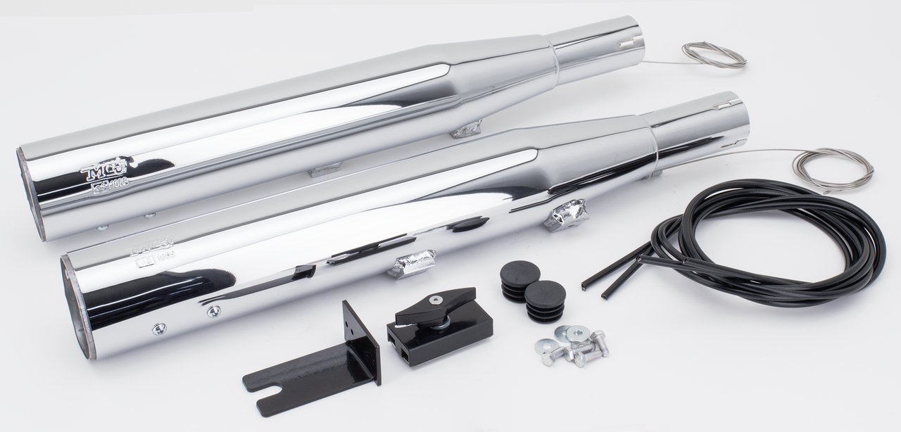 Fits European market (5HD…) 2004-2006 FXST Softail Standard, FXSTB Night Train and FXSTS SpringerOrder MCJ 80mm end caps separately, Slip-on mufflers, without end caps, Royal 80 Chrome (Euro-3)
