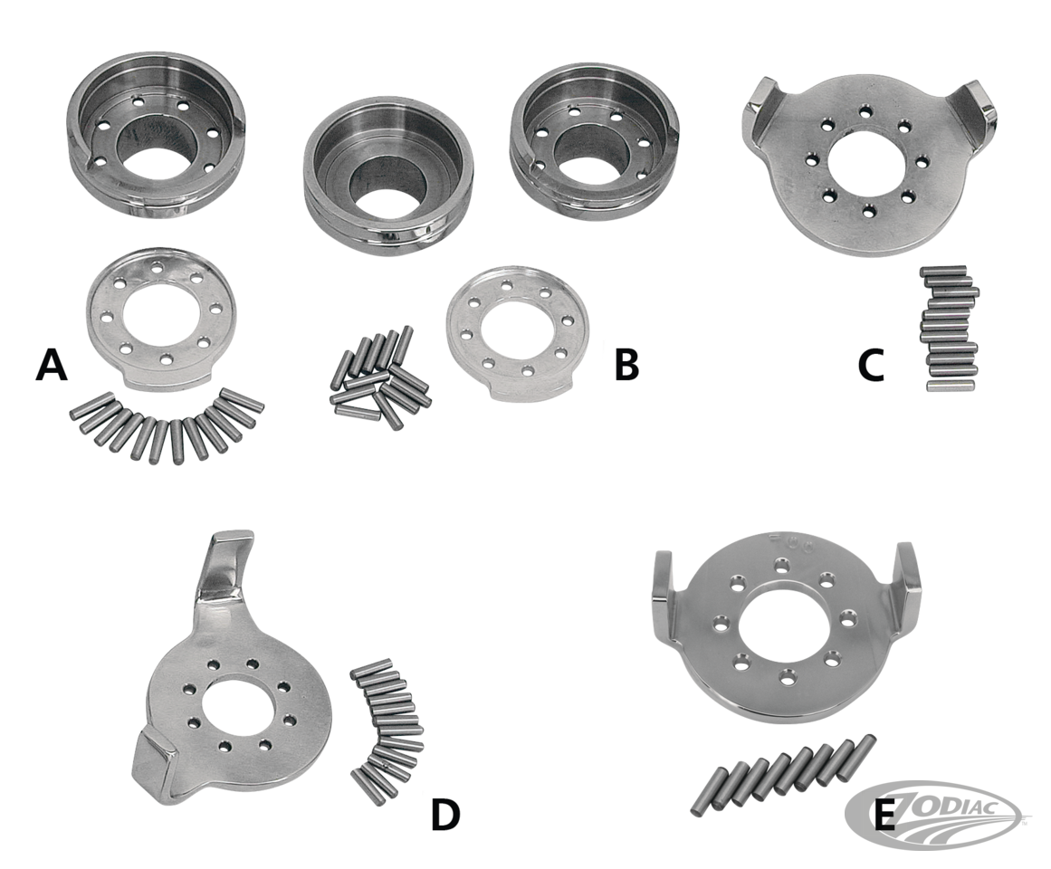Stainless steel steering stops. Available as hidden steering stop for models with loose steering head cups as well as for models with cast bearing cups. Hidden stops are available as bottom cup only and as a set that includes both top and bottom cup.