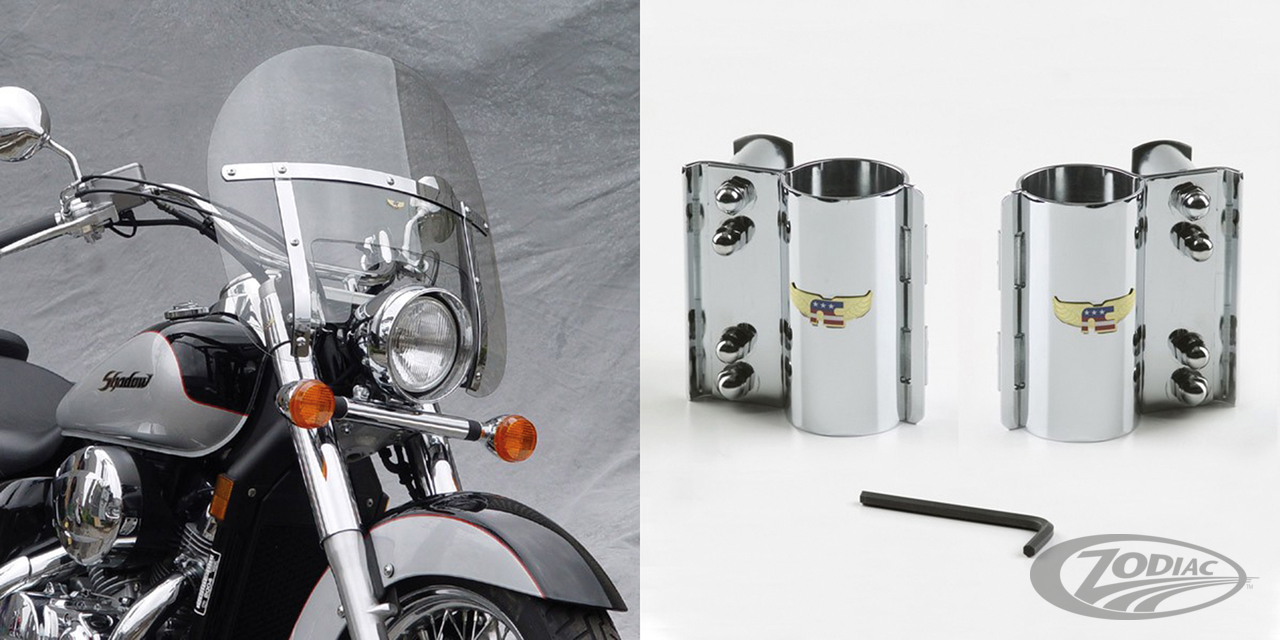 The Chopped Heavy Duty has a wide screen and low profile to make it the preferred choice of many riders. This windshield provides excellent protection for the chest and shoulders. Shields feature National Cycle's state-of-the-art Quantum coating on Lexan polycarbonate material. Windshield frames feature highly polished chrome steel outer hardware with non-glare black epoxy coated steel inner straps. Windshield is 21.5" (54.6cm) wide and adjustable in height from 14.3"-15.8" (36-40cm), measured from the top of the headlight cut-out to the top of the screen. The center lower window with the headlight cut-out is also adjustable, so after adjusting your screen to match your length and riding style, you simply adjust that section to get the looks you like. Complete windshield kits come complete with the required mounting hardware. For those who want to add their personal touch we also have adjusting windows available in various colors. When you want to create some convenient up-front storage we have a Holdster windshield bag available as an accessory.