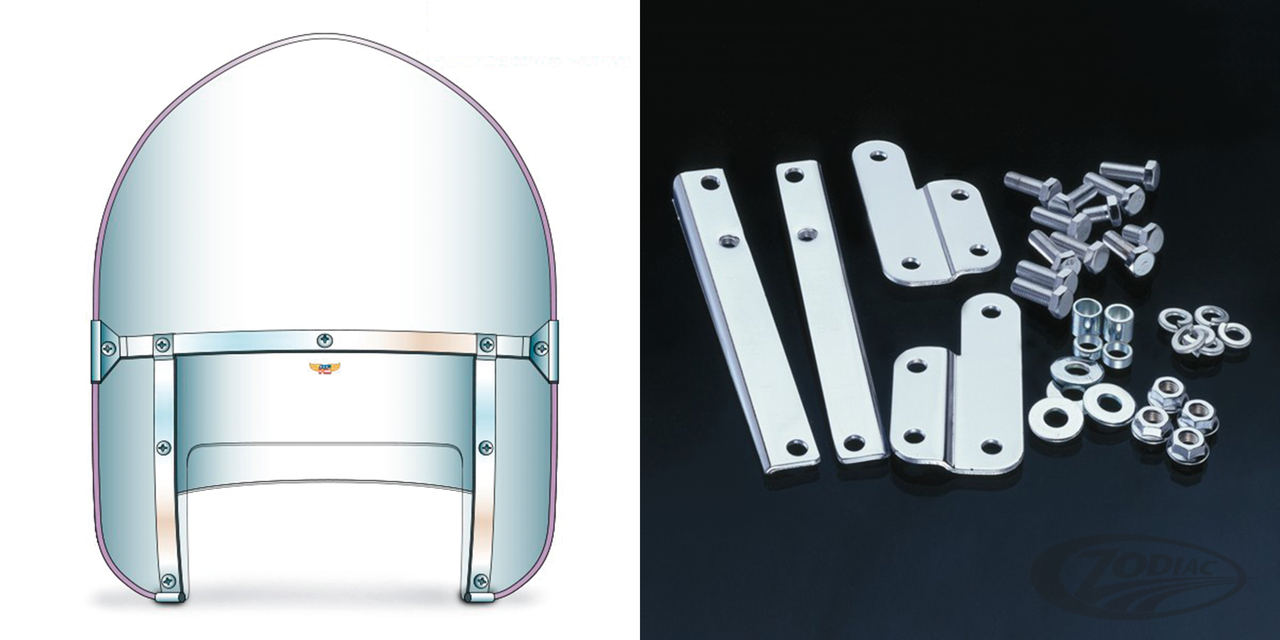 Fits 41mm forks on 1949-1959 FL Hydra Glide and Duo Glide, Complete 1949-1959 style peaked top windshield kit, clear