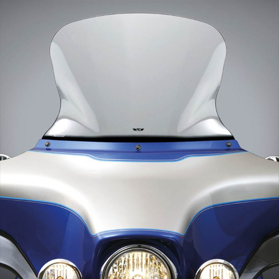 Fits all stock "Batwing" fork mounted windscreen bodies on FLHT, FLHTC, FLHTK & FLHTCU Electra Glide 1996-2013, FLHX Street Glide 2006-2013, FLHTCUTG Tri-Glide Ultra Classic 2009-2013 and FLHXXX Street Glide Trike 2010-2011, Tall, 17" (43.2cm), clear
