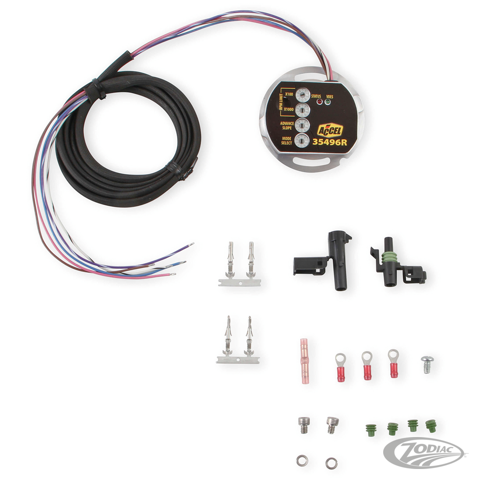 For faster, easier starting, Mallory's 12V electronic ignition system delivers performance and reliability at an affordable price. This unit is a drop-in for 1936-1969 OHV-Big Twin. When using stock-heads, no head removal is required. This billet distributor utilizes the Accel selectable single/dual fire ignition module. A complete kit that comes with detailed fitting and tuning instructions and wiring harness. Features adjustable Rev Limiter.
