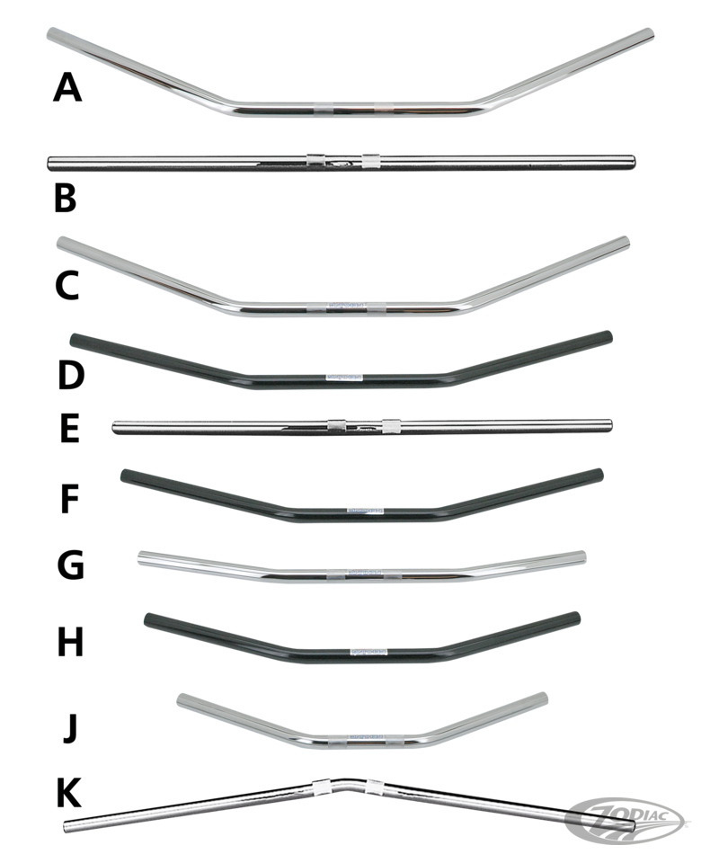 Made in Germany handlebars for 1970 and later Harley-Davidsons except XG Street models.4-Hole style bars are designed to route the handlebar switch wires through custom risers wit hollow studs. Throttle-By-Wire style bars are ready to take the electronic throttle control as introduced in 2008 on Touring models.