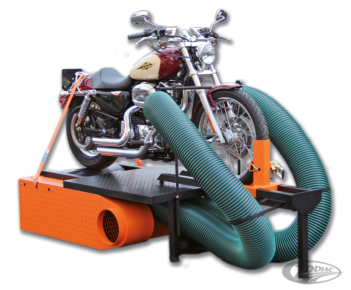 Includes: ● Folding aluminum ramp ● Cooling ducts with stands ● Intake air temperature sensor ● Contactless infrared engine thermometer ● Speed measuring sensor ● Footrest to tie-down adapter ● One pair of tie-down straps ● Wireless remote controller ● Diag4Power software