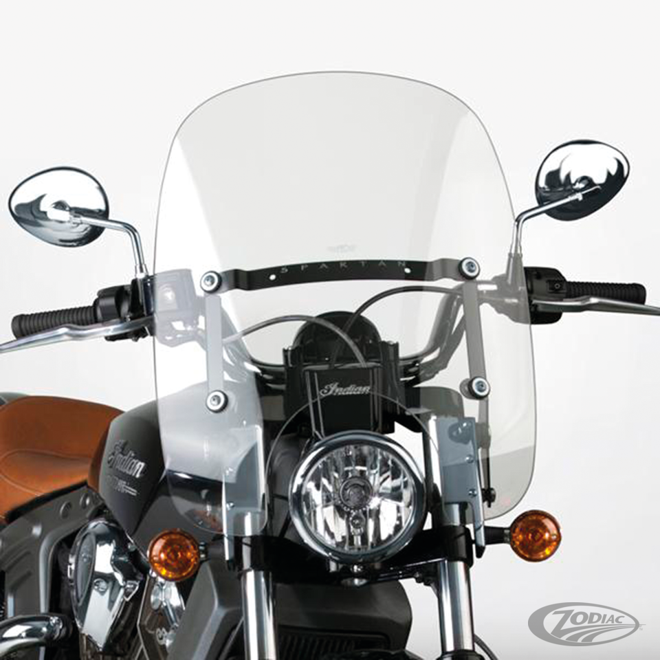 Fits 41mm front forks on all 2015 to present Indian Scout, Clear Spartan windshield only, 16.25" (41.3cm) high
