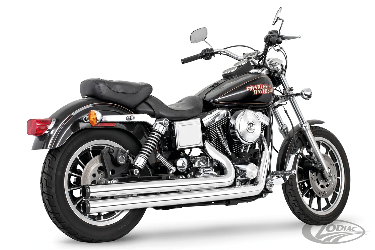 FEATURES & BENEFITS •2 step performance system for anti-reversion, full range torque and optimal horsepower •2 1/2" O.D. full 220º one-piece 16 gauge heavy duty heat shields •Race version exhausts have Hot Rod sound and removable baffles, optional quiet baffles available •O2 ports & plugs provided for early models •Offered in Chrome or Black hi-temp finish •Complete with mounting hardware and brackets •Fits Forward & Mid Controls