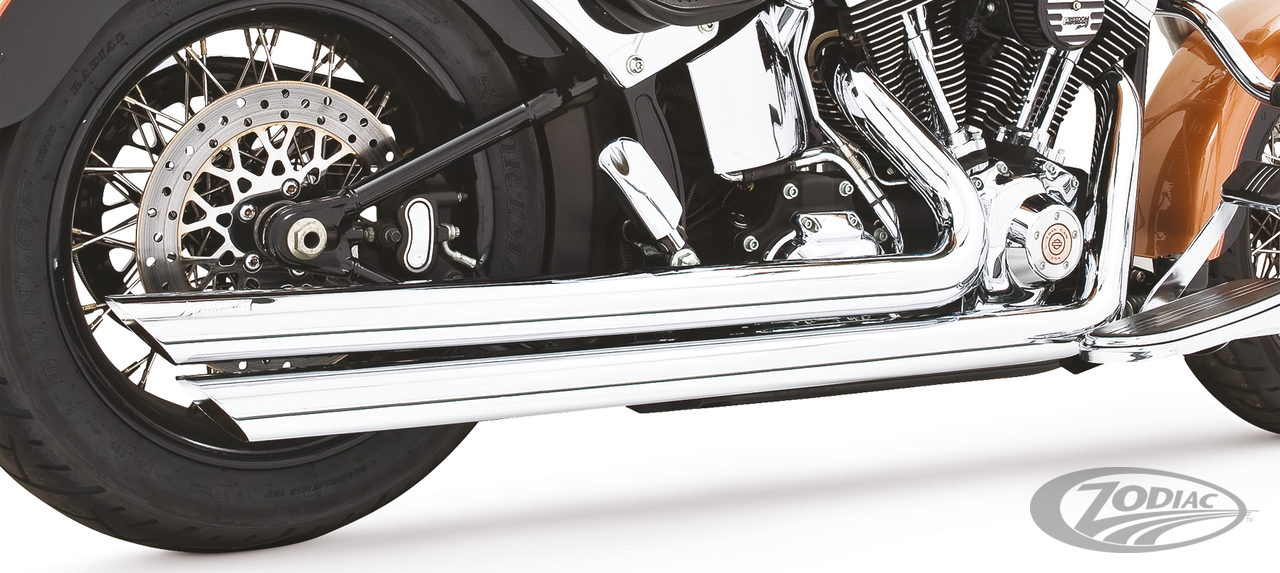 FEATURES & BENEFITS •2 step performance system for anti-reversion, full range torque and optimal horsepower •2 1/2" O.D. full 220º one-piece 16 gauge heavy duty heat shields •Racing exhausts have Hot Rod sound and removable baffles, optional quiet baffles available •O2 ports & plugs provided for early models •Offered in Chrome or Black hi-temp finish •Complete with mounting hardware and brackets •All 2021 and later European models (Euro 5) require eliminators ZPN 744444 for the rear O2 sensor and digital tuning with Diag4Bike or similar to disable related CEL (Check Engine Light) and DTC's (Digital Trouble Code)