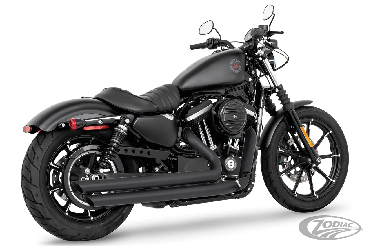 FEATURES & BENEFITS •2 step performance system for anti-reversion, full range torque and optimal horsepower •2 1/2" O.D. full 220º one-piece 16 gauge heavy duty heat shields •Racing exhausts have Hot Rod sound and removable baffles, optional quiet baffles available •O2 ports & plugs provided for early models •Offered in Chrome or Black hi-temp finish •Complete with mounting hardware and brackets •Fits Forward & Mid Controls