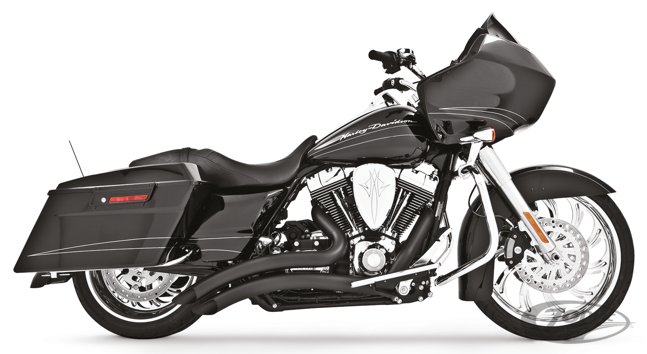 FEATURES & BENEFITS •Performance collector for maximum power and torque •1-piece full length heat shields prevent chipping, rust and peeling between sections •Large 2 1/2" 16 gauge heavy duty 220º blue proof shields available in chrome or black hi-temp finish •Exhausts have scoop tips or billet endcaps •Baffles are removable and optional Quiet Baffles are available •O2 ports & plugs provided for early models •Complete with mounting hardware and brackets •All 2021 and later European models (Euro 5) require eliminators ZPN 744444 for the rear O2 sensor and digital tuning with Diag4Bike or similar to disable related CEL (Check Engine Light) and DTC's (Digital Trouble Code) •Unmatched sound & performance