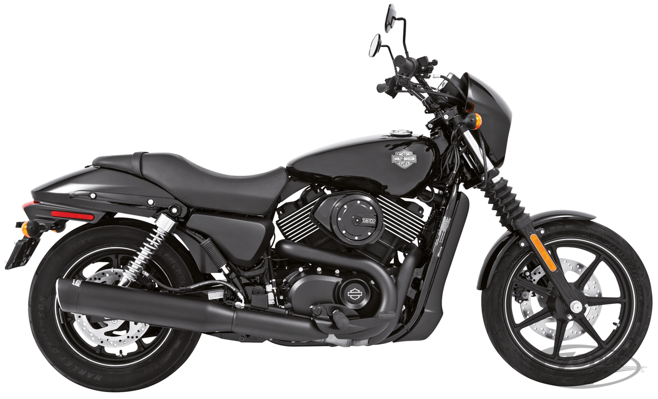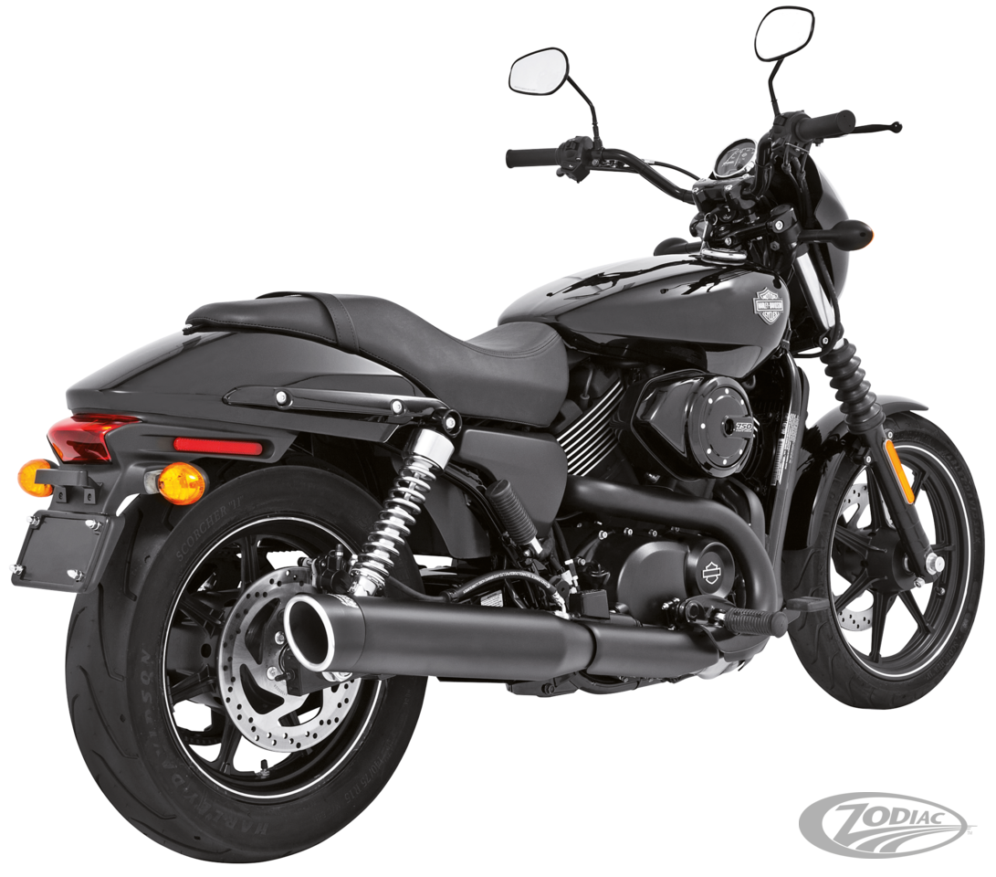 FEATURES & BENEFITS • 4" Mufflers that fit stock head pipes • Chrome or black end caps available • Interchangeable baffles • Acoustic packing for deep throaty sound • Bolt on performance and low end torque • Complete with mounting hardware and brackets • Fits Street 500 and Street 750 2015 to present