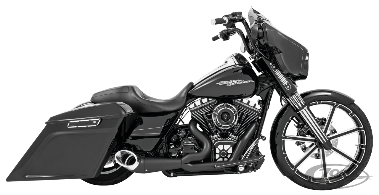 FEATURES & BENEFITS •Triple stepped headers 1 3/4" to 1 7/8" to 2" for increases of 15-18 HP and 13-15 foot lbs. of torque •Mufflers have removable baffles with a deep, rich and throaty sound, optional quiet baffles available •System equals 5 steps throughout for extreme power gains •System reduces heat concentration by 30% •Boasting full-coverage one-piece (220°) blue-proof heatshields (available in chrome or ceramic black) •Customizable with a show chrome, sculpted black or pitch black tip •Includes O2 sensor ports, plugs and all mounting hardware •Engineered for maximum power! •All 2021 and later European models (Euro 5) require eliminators ZPN 744444 for the rear O2 sensor and digital tuning with Diag4Bike or similar to disable related CEL (Check Engine Light) and DTC's (Digital Trouble Code) •Made in USA