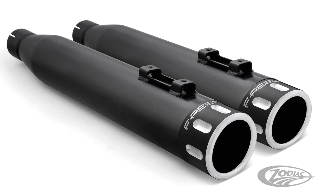 Freedom Performance slip-ons deliver the perfect sound and performance for Touring With exceptional engineering, superior manufacturing stylish finishes and end tips, you'll get the best in quality and performance that your money can buy. No matter which slip-ons you choose, you'll get increased power and a unique crisp throttle response. But, for the best power match up available, take a look at the Freedom standard true duals, sold separately. Slip-on mufflers for 2009-2016 Touring models fit 2009-2016 Tri Glide and Freewheeler models when installed together with ZPN 735791 adapter kit. All 2021 and later European models (Euro 5) require eliminators ZPN 744444 for the rear O2 sensor and digital tuning with Diag4Bike or similar to disable related CEL (Check Engine Light) and DTC's (Digital Trouble Code). ALL RACE VERSION SLIP-ONS HAVE QUIET BAFFLES AVAILABLE!