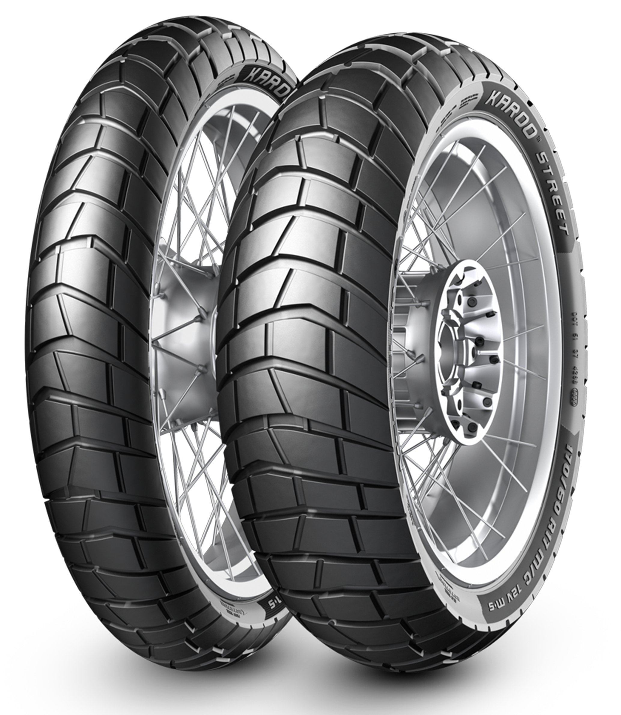 The profiles of the Karoo Street are directly derived from those of the Metzeler Tourance Next, with the precise aim to increase the on-road behaviour. It features a multi-radius profile with an increased width and overall length of the contour to increase the surface of the footprint area and hence grip and stability also when leaning. The height of the shape has been sensibly increased to improve dampening capacity and comfort. Both front and rear tire profile follows the same scheme and a similar geometry to ensure a synchronized behavior of the set.