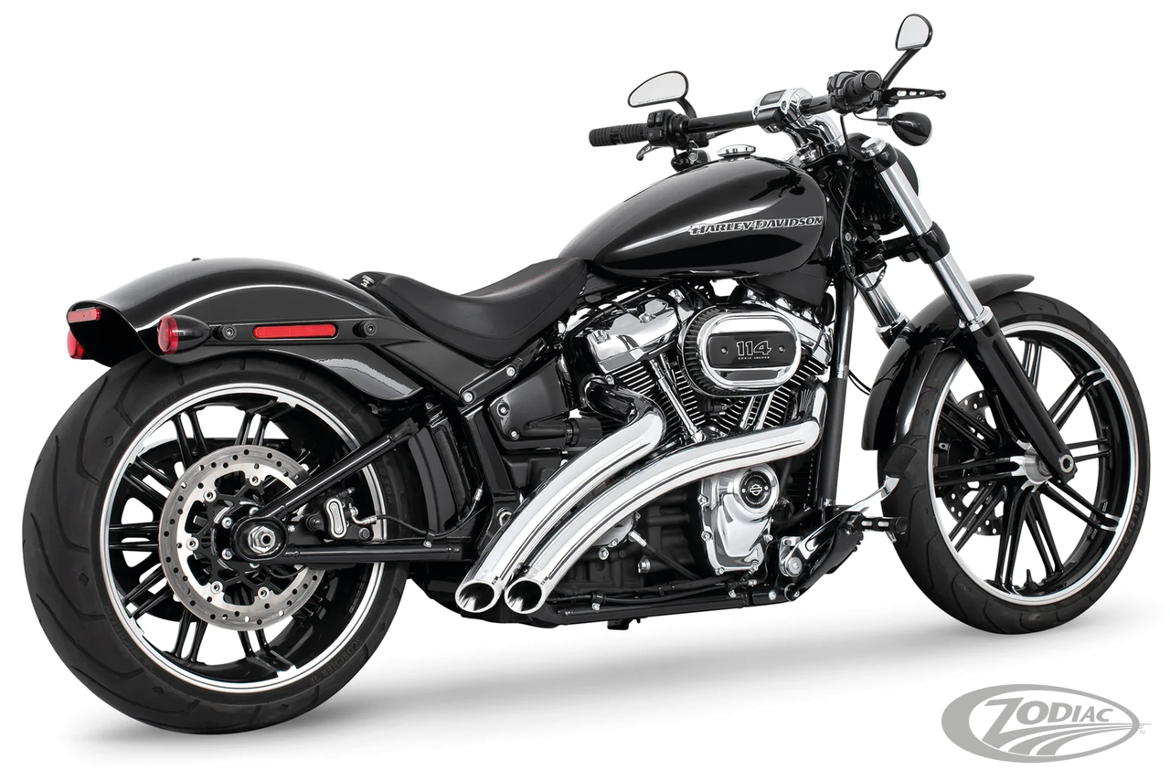 Fits 2018 to present SoftailRequires adapters when installed on FLHC & FLHCS Heritage, FLI Hydra-Glide Revival, FLSB Sport Glide and FXLRST Low Rider ST models with saddlebag supportsTo mount on FLFB & FLFBS Fat Boy, FXBR & FXBRS Breakout or FXDR(S) the passenger peg relocation kit must be ordered separatelyNote: All 2021 and later European models (Euro 5) require eliminators ZPN 744444 for the rear O2 sensor and digital tuning with Diag4Bike or similar to disable related CEL (Check Engine Light) and DTC's (Digital Trouble Code), All chrome with Slash Cut tips