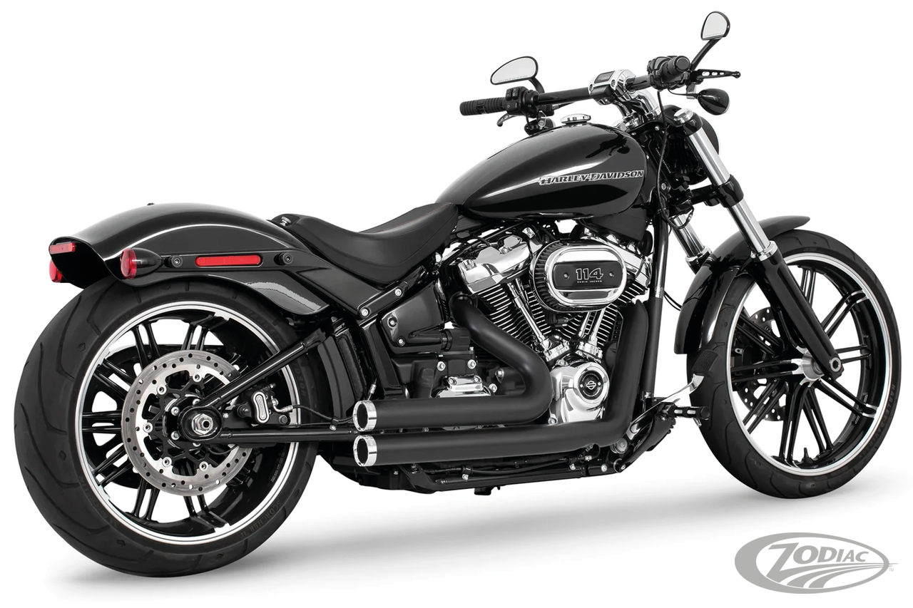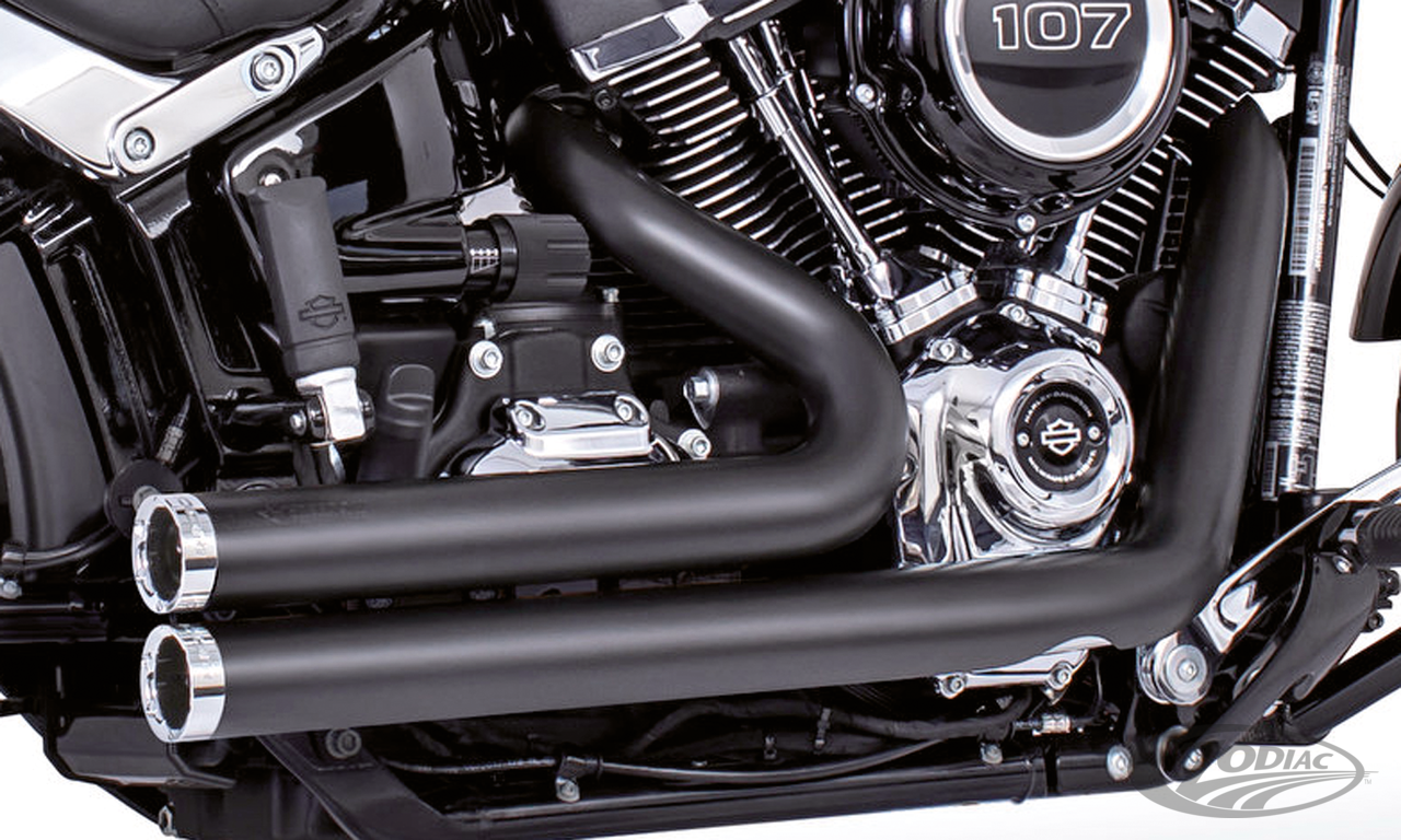 FEATURES & BENEFITS •2 step performance system for anti-reversion, full range torque and optimal horsepower •2 1/2" O.D. full 220º one-piece 16 gauge heavy duty heat shields •Racing exhausts have Hot Rod sound and removable baffles, optional quiet baffles available •O2 ports & plugs provided for early models •Offered in Chrome or Black hi-temp finish •Complete with mounting hardware and brackets •All 2021 and later European models (Euro 5) require eliminators ZPN 744444 for the rear O2 sensor and digital tuning with Diag4Bike or similar to disable related CEL (Check Engine Light) and DTC's (Digital Trouble Code)