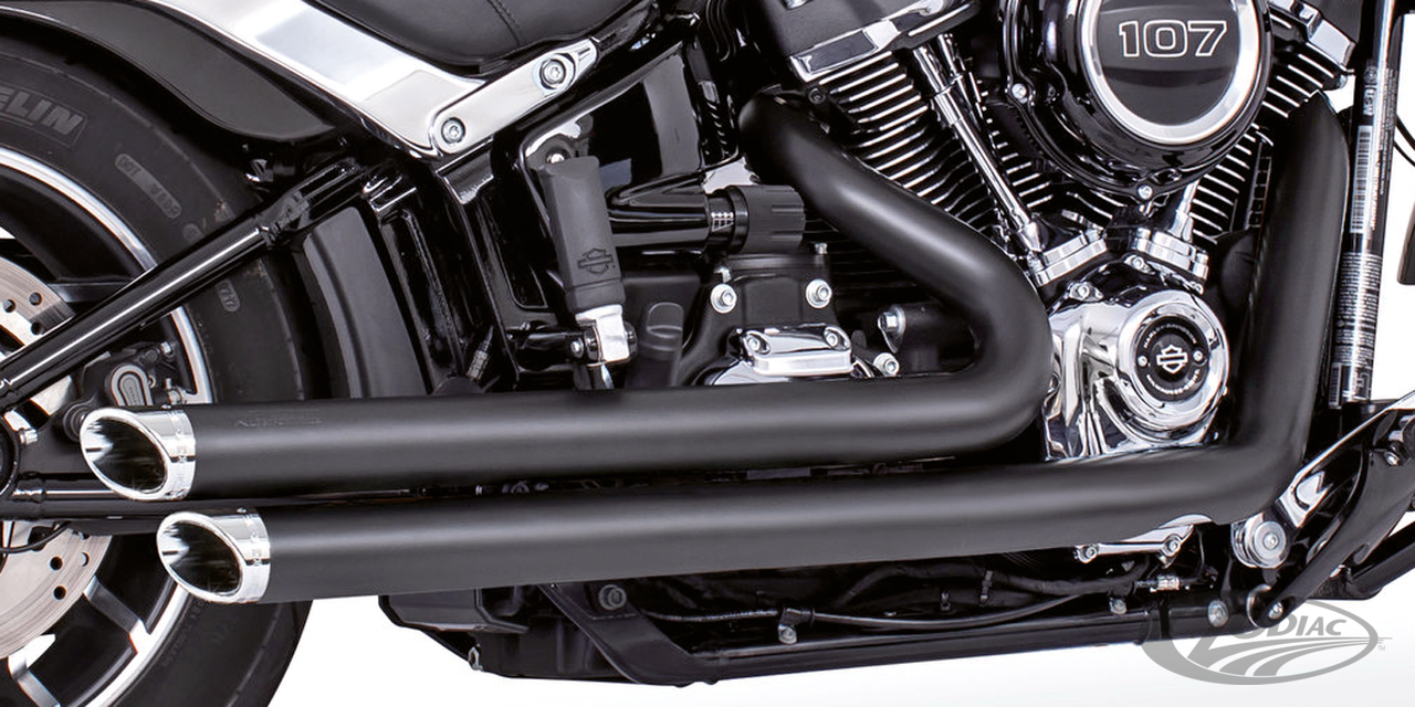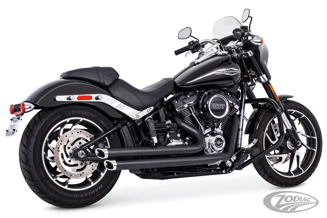2018 to present SoftailRace versionRequires adapters when installed on FLHC & FLHCS Heritage, FLI Hydra-Glide Revival and FLSB Sport Glide models with saddlebag supportsTo mount on FLFB & FLFBS Fat Boy, FXBR & FXBRS Breakout or FXDR(S) the passenger peg relocation kit must be ordered separately, Black with chrome slash tips